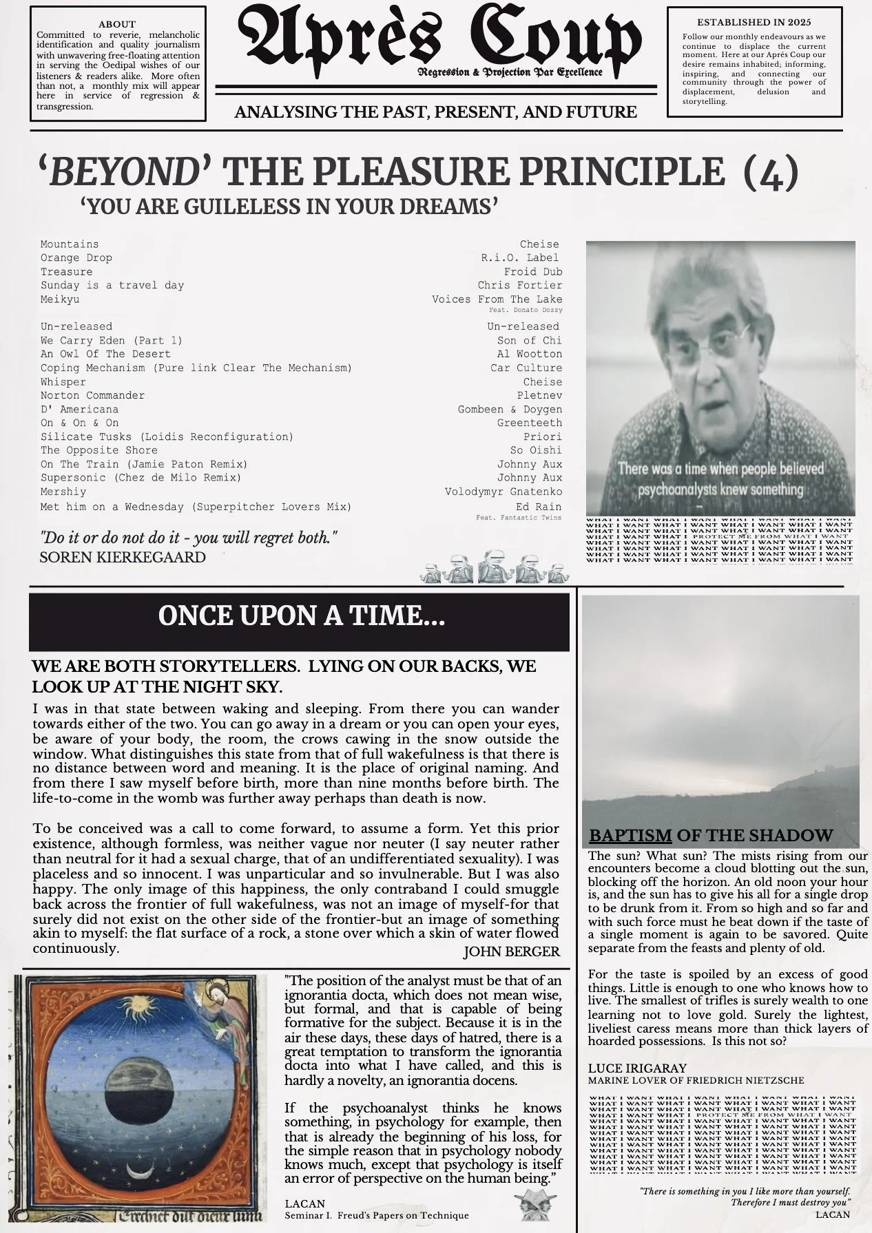 Après coup (4) CLICK HERE FOR 'BEYOND' THE PLEASURE PRINCIPLE May / June Tom GreenallJuly 19, 2025 Facebook0 Twitter LinkedIn0 Reddit Tumblr Pinterest0 0 Likes
